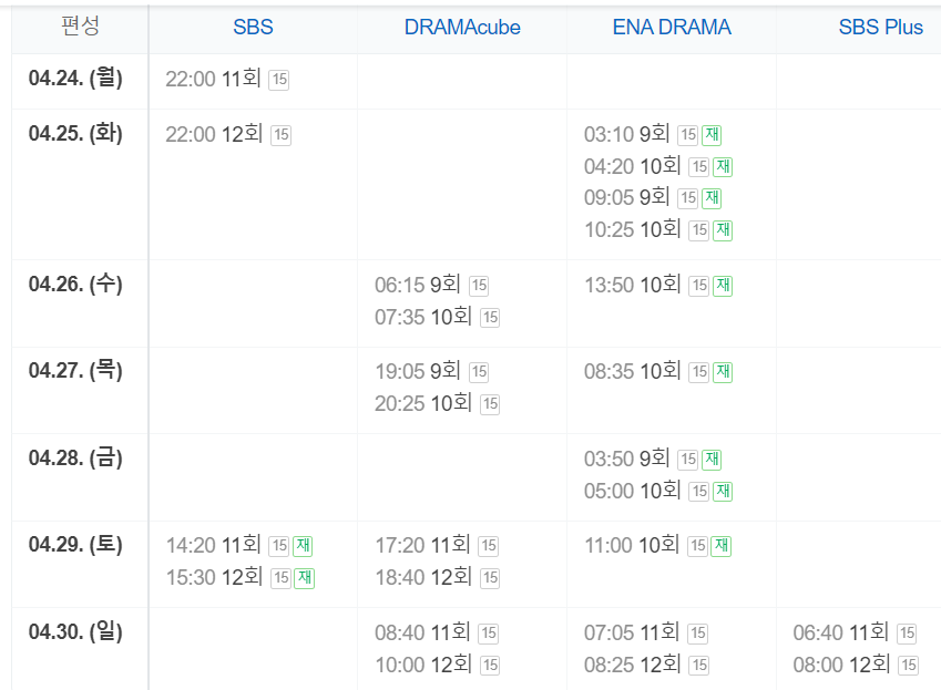 매주 월요일 화요일 오후 10시 본방송